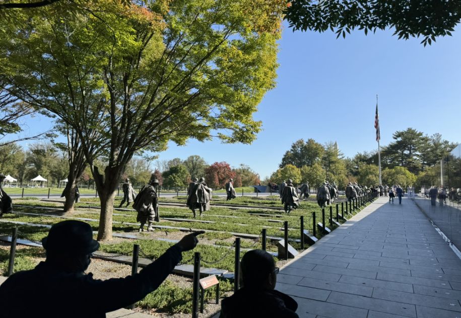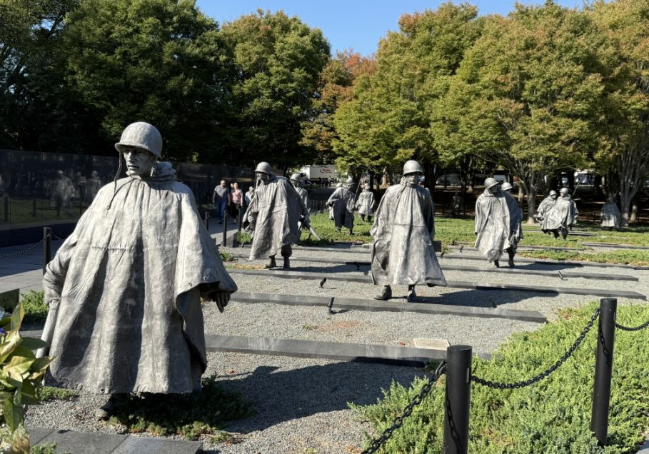 We are now heading to the Korean War Memorial. It is a profound site designed to convey the intensity and the "forgotten" nature of the Korean War. Its two most iconic features, the field of statues and the mural wall work that together to tell a story of service and sacrifice. For a long time, the Korean War was dubbed the Forgotten war" sat in the shadow of the "Big One" (WWII) and the controversial one (Vietnam). Having the name and dates etched so boldly at the entrance was a way for veterans to say, "We were here, and this happened." It demands that the visitor acknowledge those specific three years of intense, frozen, and often brutal combat.