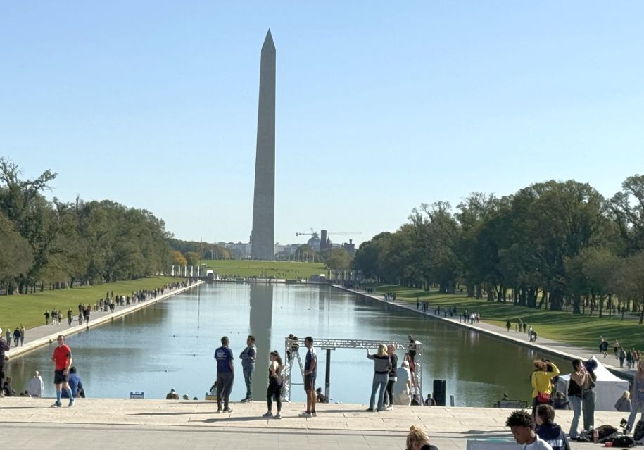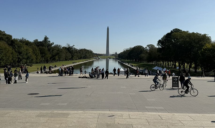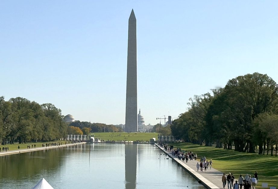 When we leave the Korean War Memorial and begin walking toward the Lincoln Memorial, the landscape opens wide. The landscape shifts from intimacy to grandeur. The long walk opens onto the Washington Monument, rising clean and pale against the sky.