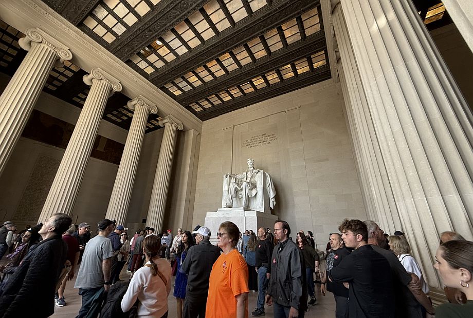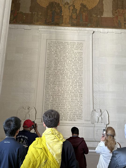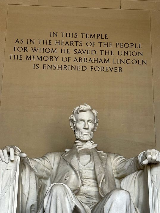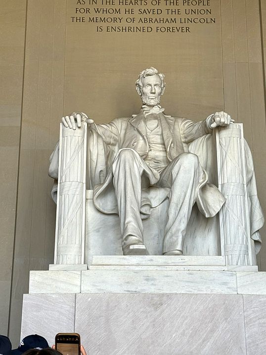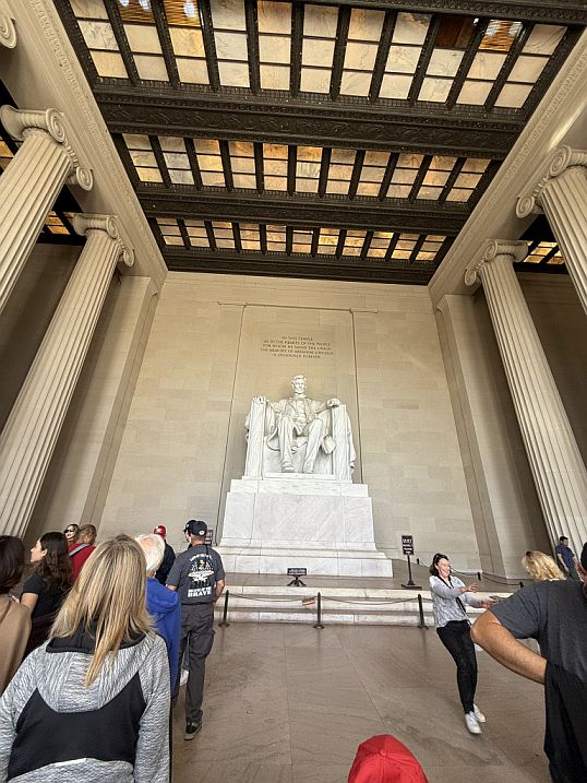 Then we stepped inside, and there he is. The Lincoln Memorial is a masterpiece of symbolism, designed to honor Abraham Lincoln as the "Savior of the Union." Architect Henry Bacon modeled the building after the Parthenon in Athens, the birthplace of democracy, to reflect Lincoln’s defense of democratic ideals.