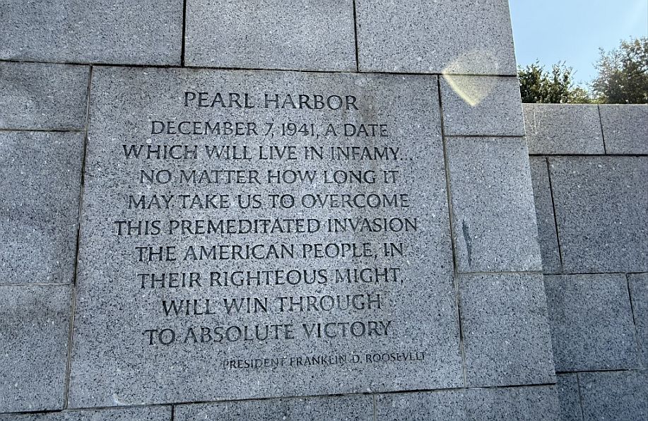 This quote from President Franklin D. Roosevelt is one of the most powerful and iconic inscriptions at the World Memorial, and it comes from one of the defining moments in American history. The words are part of President Franklin D. Roosevelt’s address to Congress on December 8, 1941, the day after the attack on Pearl Harbor. It’s the speech that brought the United States formally into World and marked the turning point, a moment of national shock and unity. Roosevelt’s calm but resolute tone gave the country a clear sense of purpose: that despite the devastating attack on Pearl Harbor, the nation would rise, mobilize, and ultimately prevail.