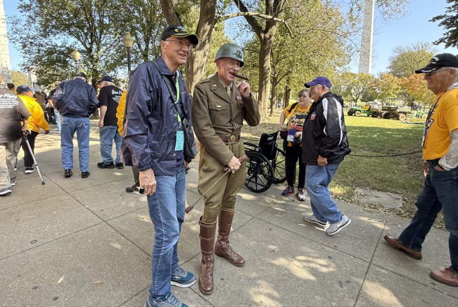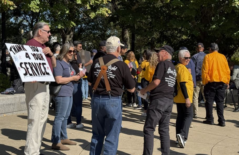 Many visitors and passersby hold thank you signs, often spontaneously, to show appreciation and respect for the veterans’ service.