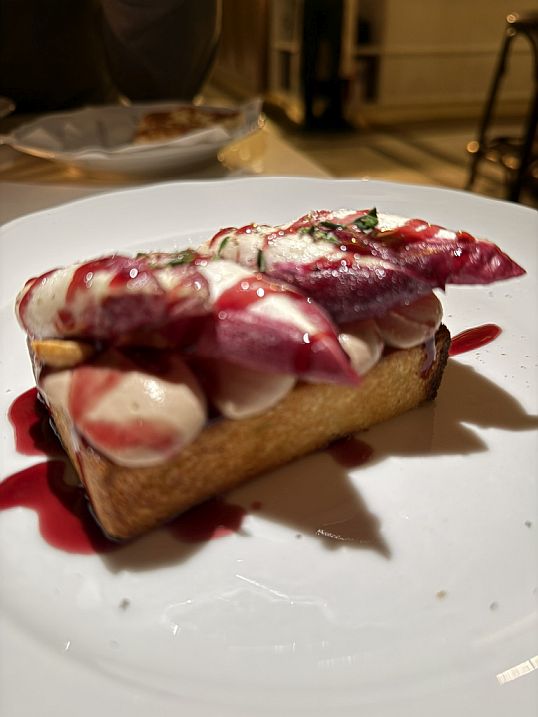 This dish is all about balance. The brioche was toasted, slightly sweet, and pillowy. The foie gras mousse, silky, luxurious, and delicate that piped on top of the brioche. The endives add a gentle bitterness and crunch, while the roasted beet juice brings an earthy sweetness and a beautiful deep color that cuts through the richness. It’s indulgent but thoughtfully structured.