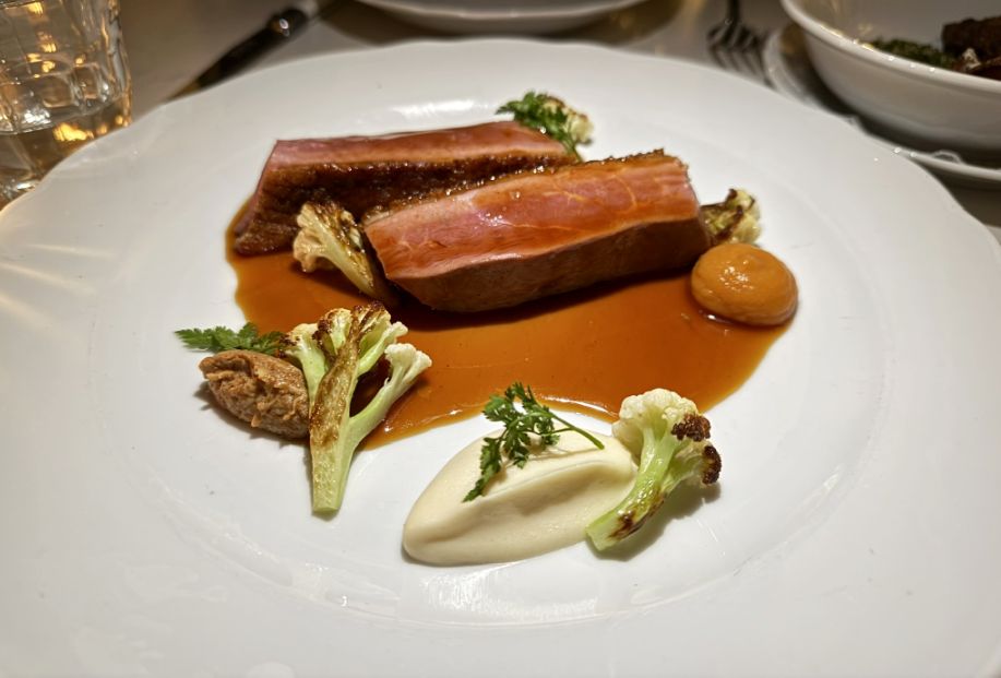 Long Island Duck, cauliflower, persimons, sunchoke, preserved chanterelle