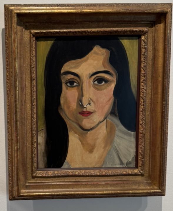 Matisse was the leader of the lively and innovative Fauve group, Matisse define the cutting edge in art. The 1913 Armory show, which helped pave the way for modern art in the United States, featuring a generous selection of his works. Extolled for their originality by some critics and revile for their extremism by others, they created quite a stir. In 1917 and 1918, Matisse produced a series of nearly fifty paintings on an Italian artist' model that mark his shift from a relatively severe and abstract manner to a more naturalistic mode, which would dominate his work in the 1920s. Here the face of Lorette overwhelms the visual field; its tone and colors are the same as those of the minimally panted background. Her expression is impassive, but her direct gaze helps to create a connection with the viewer.