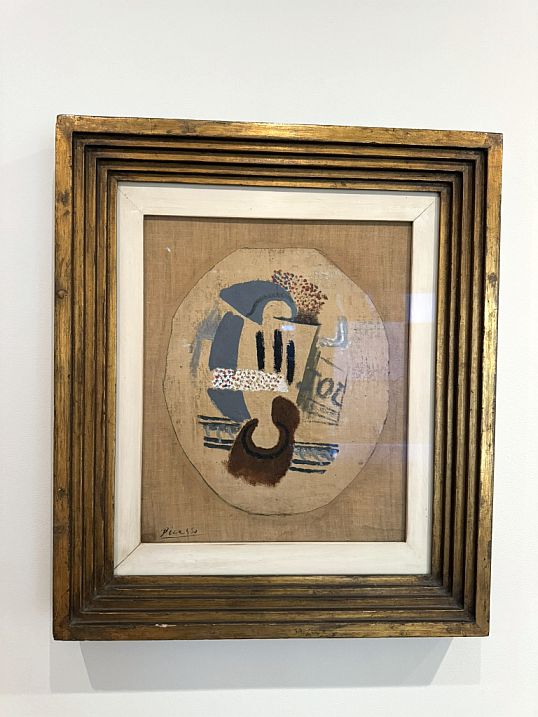 On the left is Still Live (Wineglass and Newspaper, 1913-1914, Oil on canvas-Pablo Picasso, Spanish, 1881-1973