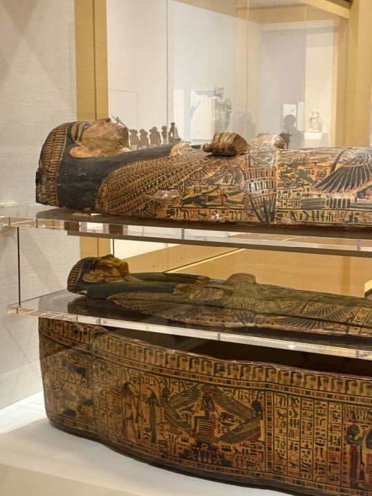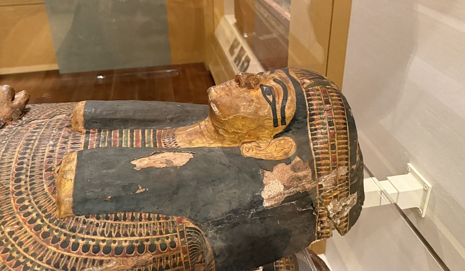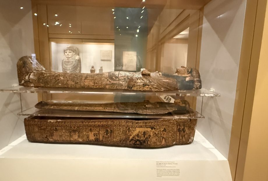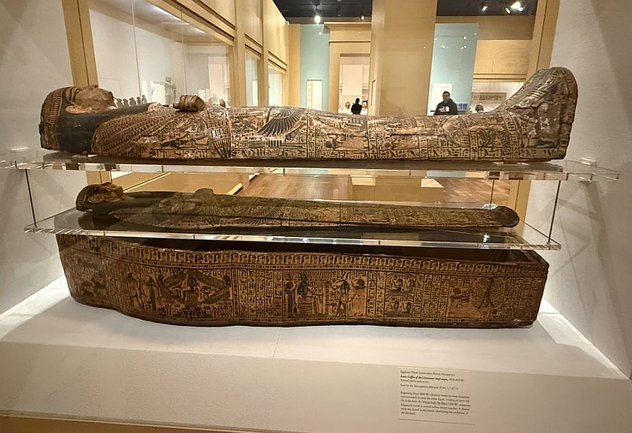 We are into one of the ancient art sections, specifically Egyptian. The Inner Coffin of the Charioteer Atef-amon, dating from 1070-945 BC, is a fascinating and historically rich object. This period is significant in ancient Egyptian history, and the coffin offers many insights. dates to the Third Intermediate Period, specifically the Late New Kingdom to early 21st Dynasty. This was a time of significant change and decreased centralized power in Egypt. The empire was fragmenting, with different rulers controlling different regions (e.g., pharaohs in the north, high priests of Amun in the south).