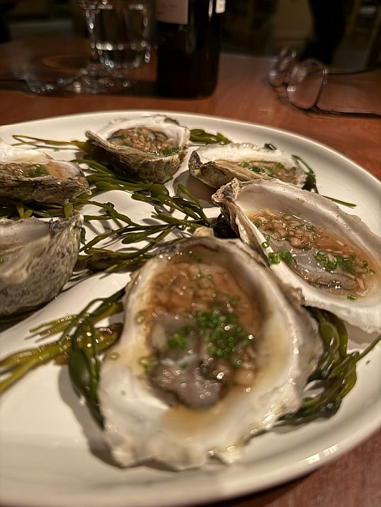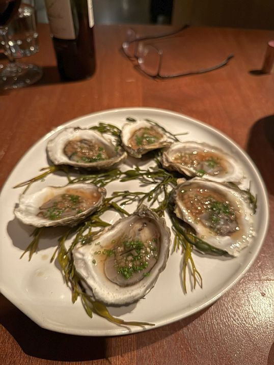 We decided to go with the Chef's menu. We started the meal with a platter of oysters with ginger Mignonette
