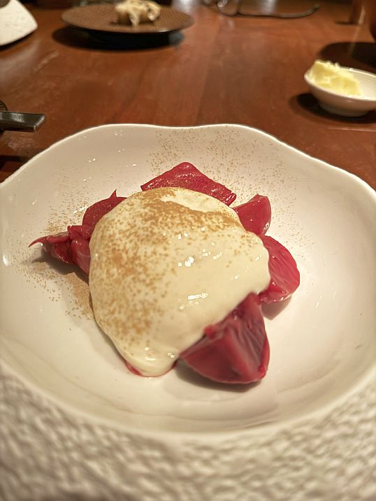 The roasted beets had a deep, earthy sweetness, intensified by caramelization. Paired with a warm cheese fondue, the dish balances earthiness with creamy indulgence. The fondue would add richness and saltiness, contrasting beautifully with the beets’ natural sugars and giving the salad a luxurious texture.