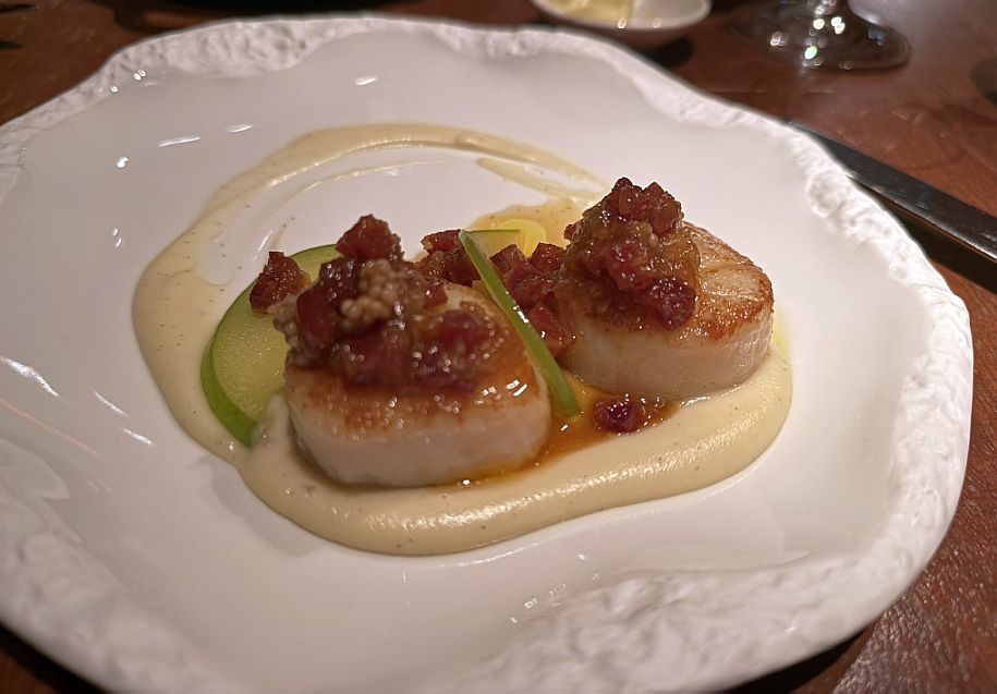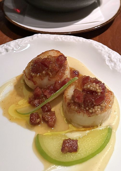 The scallop was perfectly seared with a golden crust outside and tender, sweet interior. The Cauliflower purée was silky and mild, acting as a smooth, neutral base. The fig added a gentle sweetness and the bacon jam was smoky, salty, and slightly sweet, tying everything together. It’s a wonderful interplay of sweet, savory, smoky, and creamy.