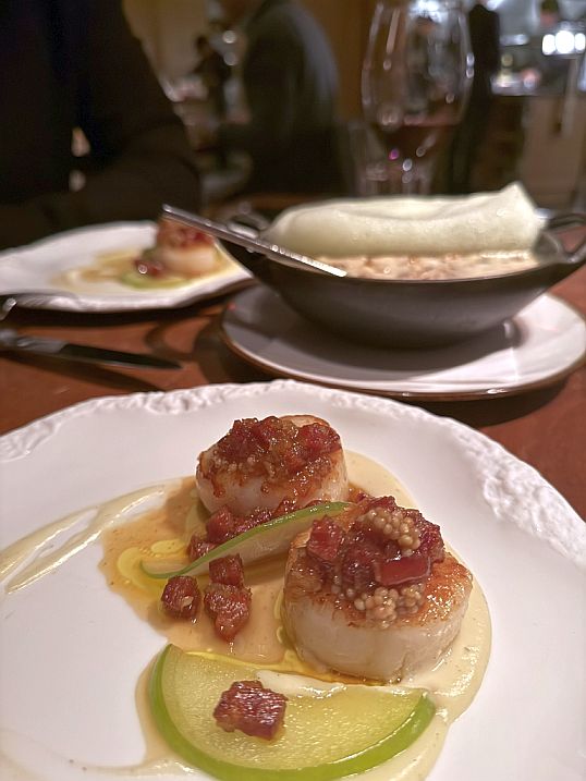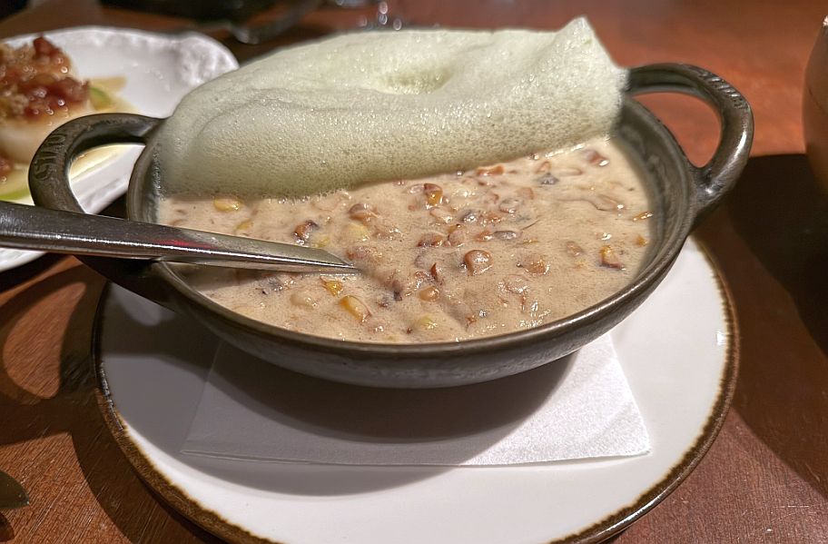 This is a side dish to be eaten with the duck dish. It is a well-made creamy risotto that is still slightly al dente with a rich, smooth, and flavorful taste . The “light foam” on top is a modern touch that was airy and delicate, adding aroma without heaviness, and enhanced the flavor profile while keeping the dish elegant rather than dense.