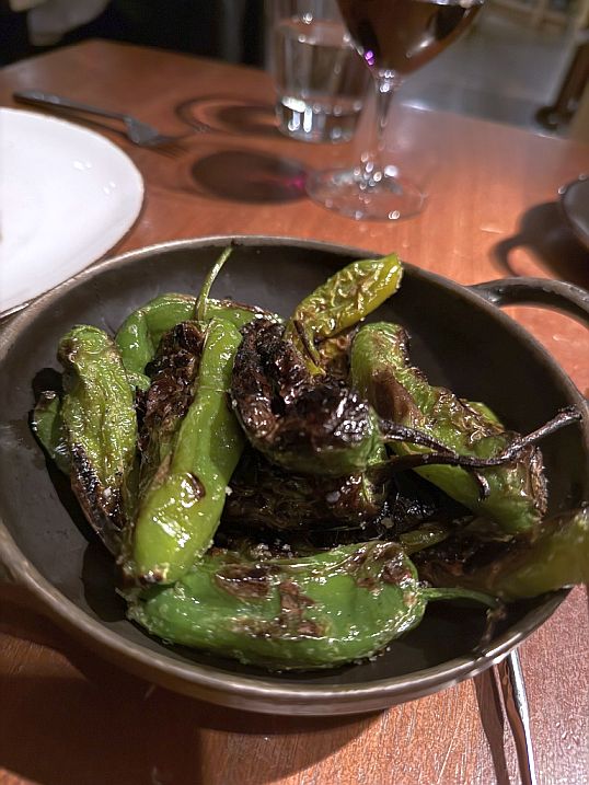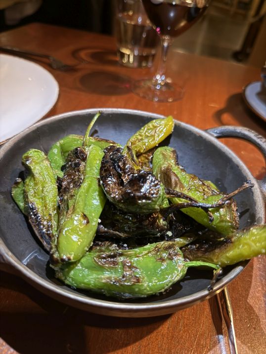 Blistered Padrón Peppers with Roasted Duck Breast and Duck Leg Confit. The Padrón Peppers were wood-fired grill and were fantastic.