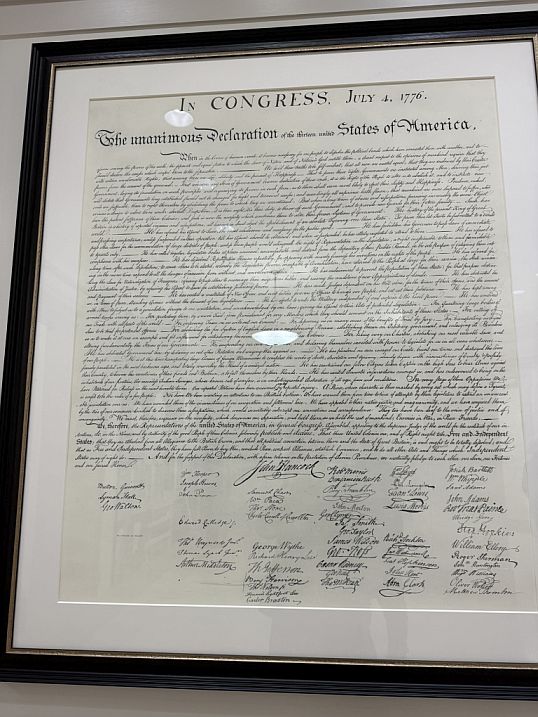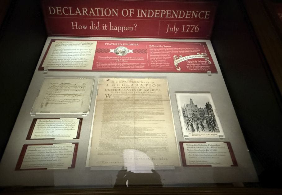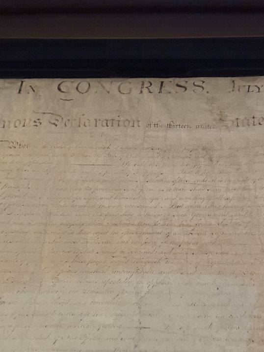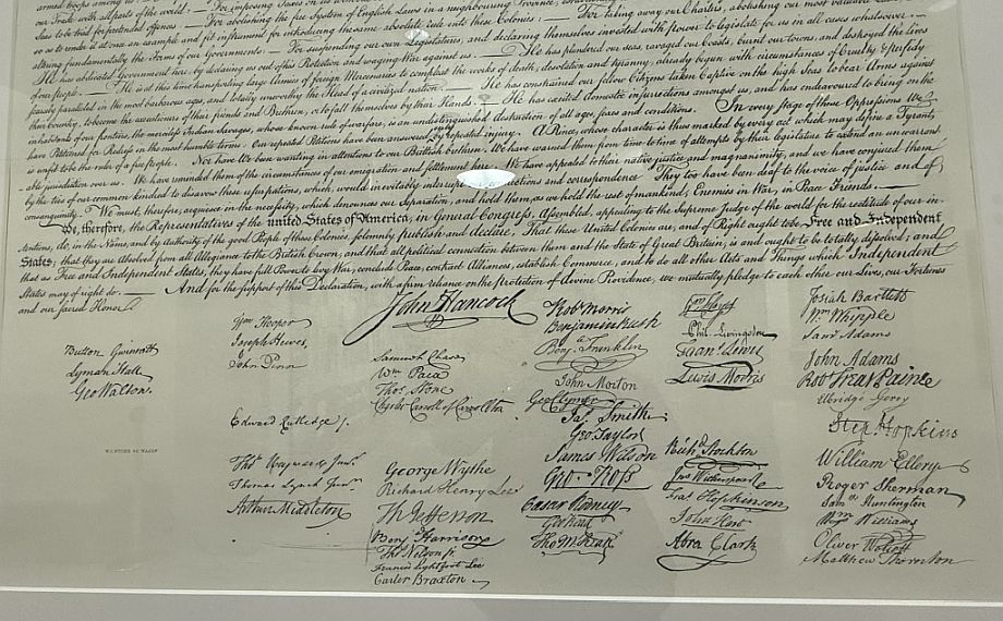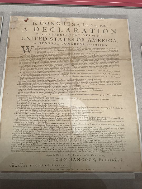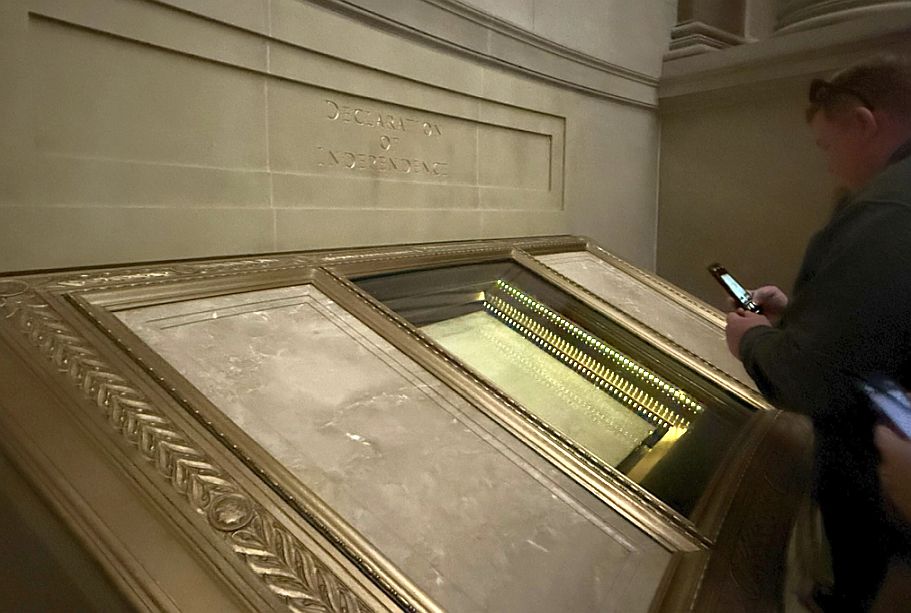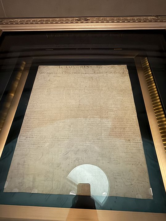 The original Declaration of Independence is housed within a hermetically sealed glass and titanium case inside the Rotunda. This is one of the "Charters of Freedom" documents.