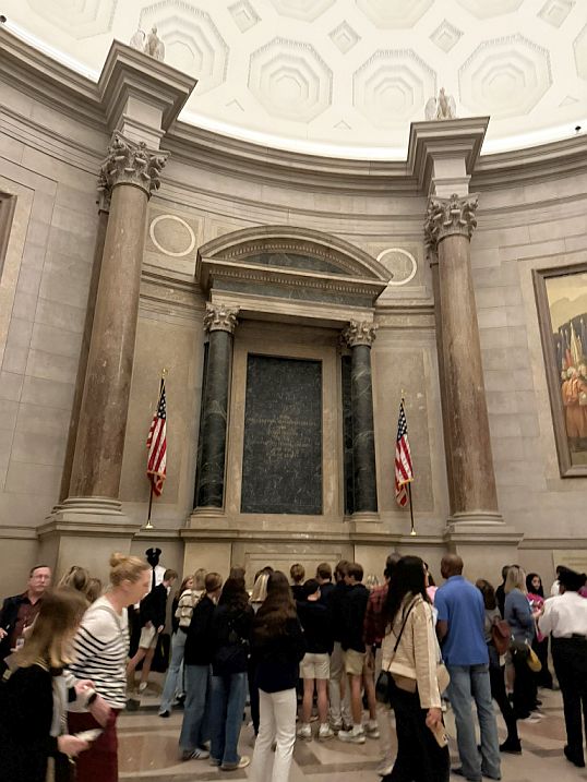 Once we stepped inside, we are all in awe. The Rotunda is a grand, semicircular hall designed to inspire reverence for the documents it houses. The main attractions here are: The Declaration of Independence: The founding document of the United States. The Constitution of the United States: The supreme law of the land, outlining the framework of the federal government. The Bill of Rights: The first ten amendments to the Constitution, guaranteeing fundamental rights and freedoms.
