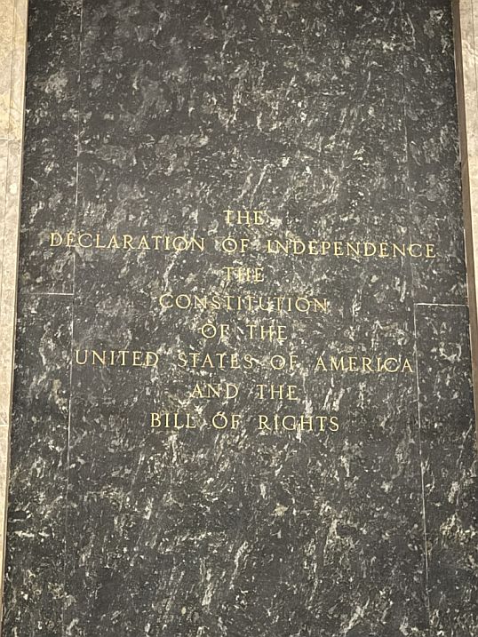 Inside that dark, recessed area are the original, priceless parchment copies of the Declaration of Independence, the U.S. Constitution, and the Bill of Rights. These are the Charters of Freedom.