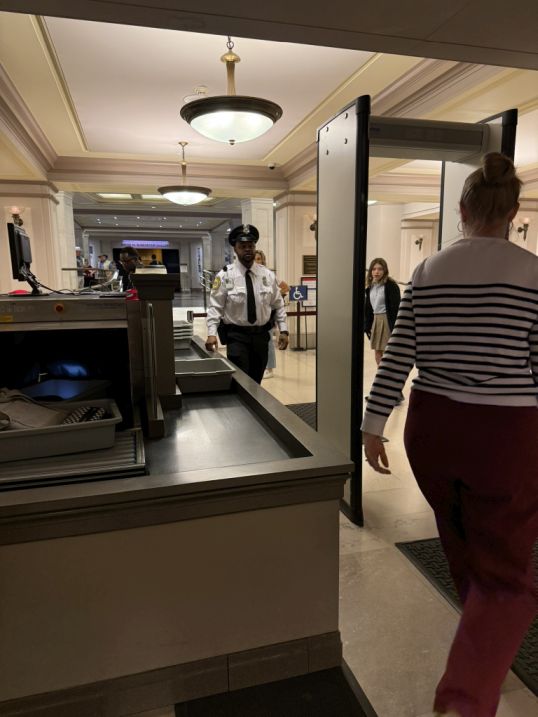 To get inside we had to line up and passing through a metal detector in order to get inside the building.