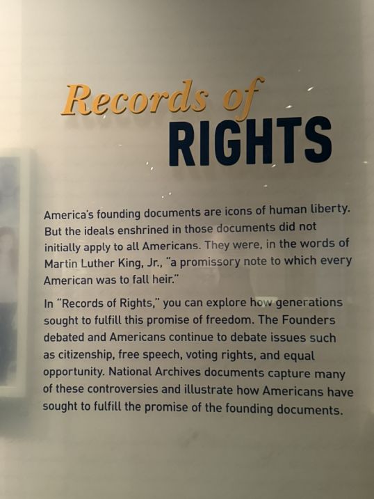 The "Records of Rights" is a permanent exhibition, and it is a very powerful section that directly addresses the struggles and triumphs in the fight for civil rights and liberties in American history.
