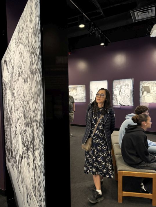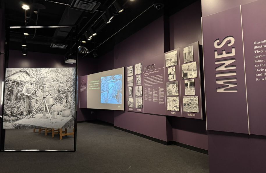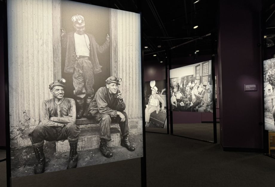 This area with the large historical photographs, including miners workers and