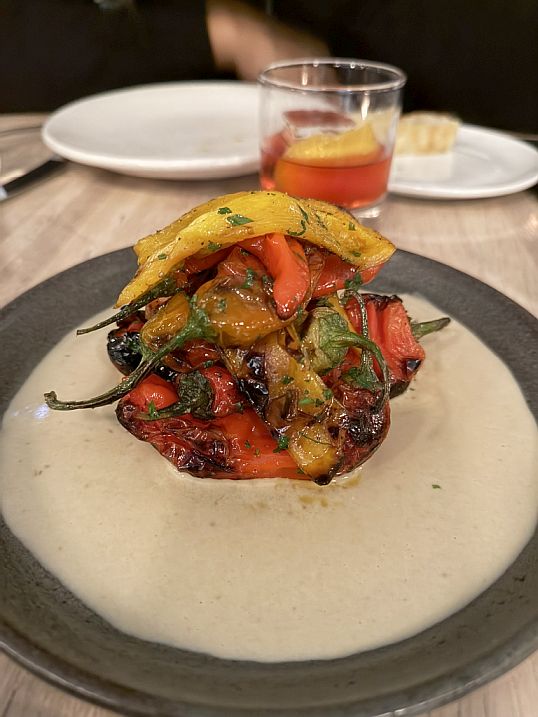 Peperoni shishito & Escamillo peppers, Bagna Cauda. This dish is rooted in northern Italian tradition.