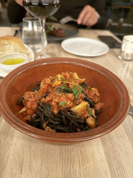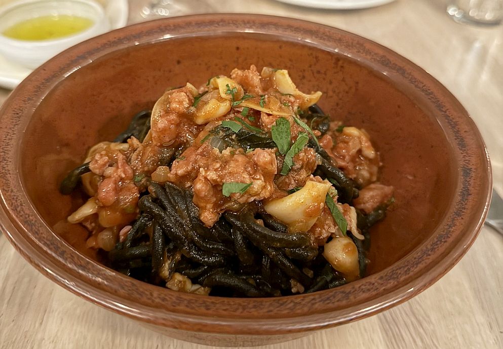 Bucatini Squid Ink, Cuttlefish, Fennel Sausage, Tomato and Basil