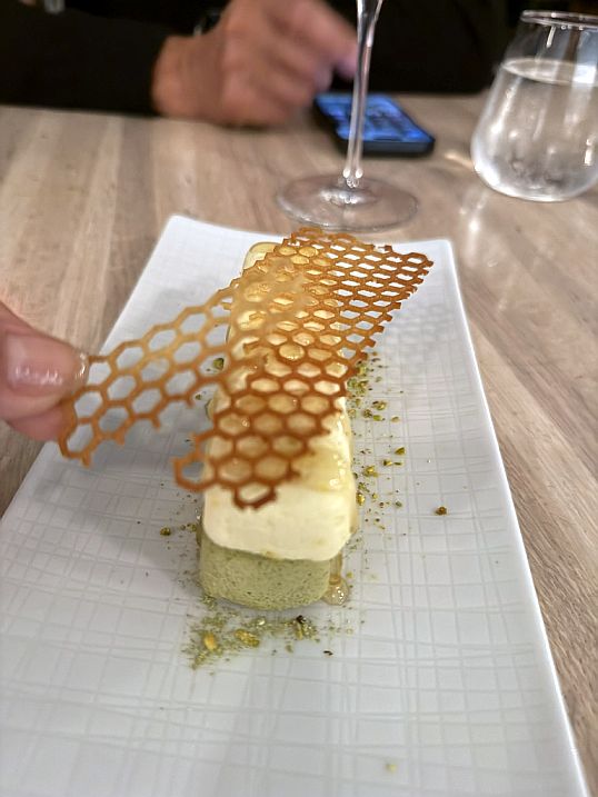It is a creative reinterpretation rather than a traditional tiramisu. Instead of coffee-heavy tiramisu, this version feels lighter, more aromatic, subtly bittersweet and modern. It finishes the meal with elegance rather than heaviness.