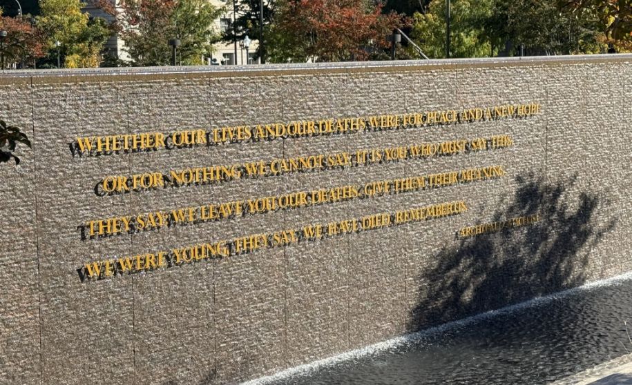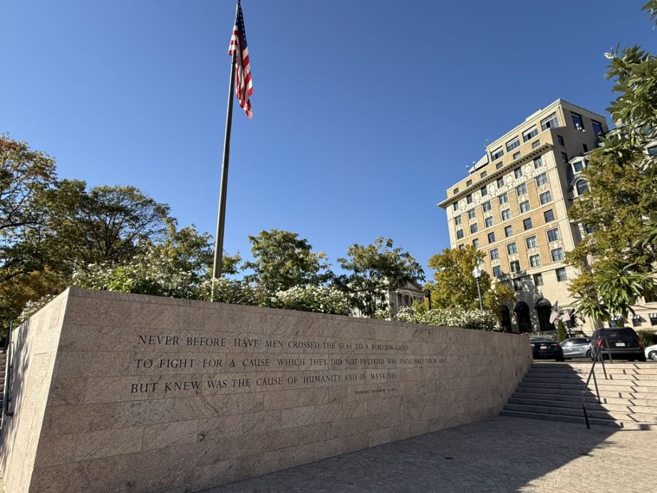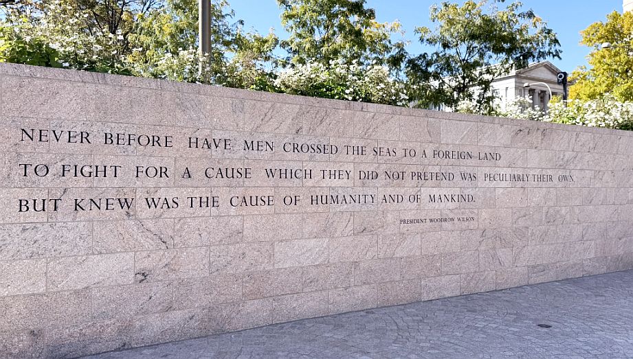 We are now leaving the park and on our way out I notice this wall with a direct quote from President Woodrow Wilson. This particular quote comes from a speech Wilson delivered to the Continental Congress of the Daughters of the American Revolution on April 17, 1917, just days after the United States officially entered World War I.