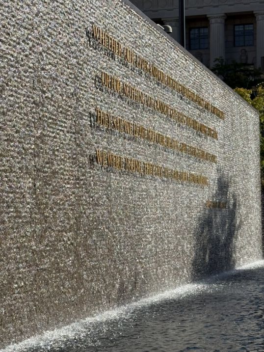 Moving water often symbolizes life, memory, purification, and the passage of time. The cascading nature can evoke tears, loss, or the relentless flow of history. It invites visitors to pause and reflect in a quieter space.