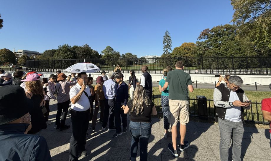 When we arrived at the White House, we noticed something many first-time visitors find surprising that people cannot walk directly up to it. What you see is a large lawn, a road/security perimeter. a fence, and security officers beyond. This layered separation is very intentional. Pennsylvania Avenue in front of the White House used to be open to cars; today it is closed to regular traffic.