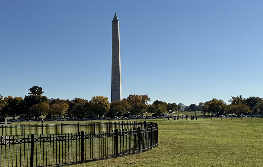 As we turned around from the White House, we saw the wide sweep of lawn stretching toward the Washington Monument. As we were looking across the Ellipse, part of President’s Park. That long open view is intentional. It creates one of the most dramatic sightlines in Washington: the White House on one end, the Monument rising in the distance. This alignment symbolizes the connection between the presidency and the nation founded by George Washington.