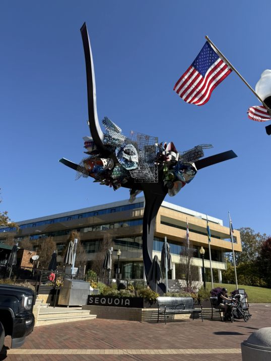 The statue is weighing 28 tons and measuring 41 feet tall. It is Overlooking the Georgetown Waterfront, the sculpture behind Sequoia restaurant features an assemblage of unique, sculpted organic forms brought together in a nest-like composition. According to the artist, the piece was inspired by both femininity and the Scarlet Oak tree, rooted in the history of DC, and reinforcing the cultural link between civic symbolism and natural imagery. Quinz says it’s a statement on modern culture’s loss of connection with nature.