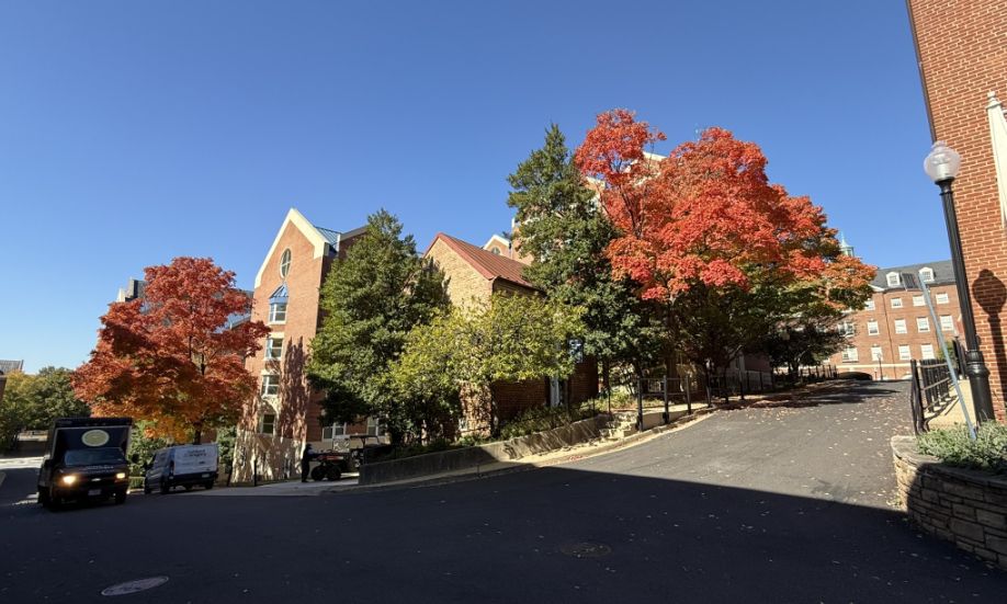 Walking around the University's campus. In autumn, the red and copper leaves echo the tones of Georgetown’s historic brick buildings, making the architecture feel naturally connected to the landscape.