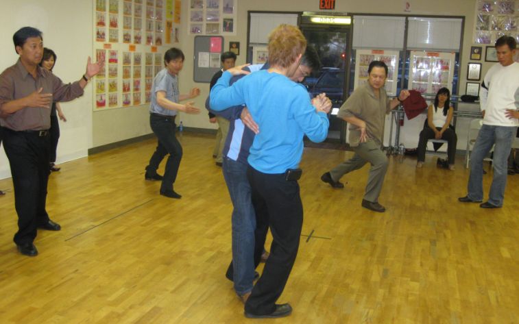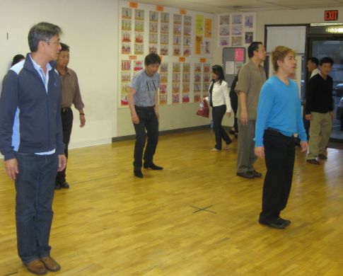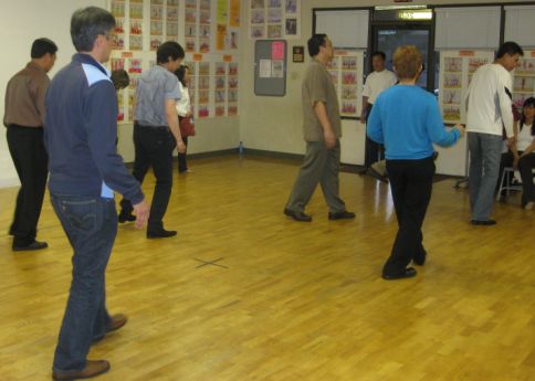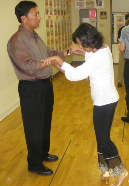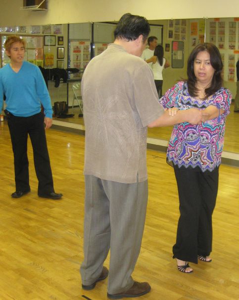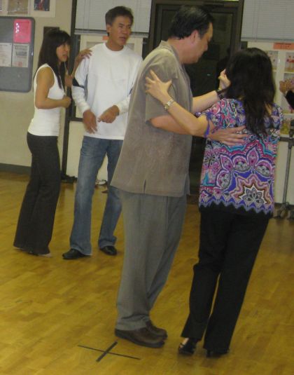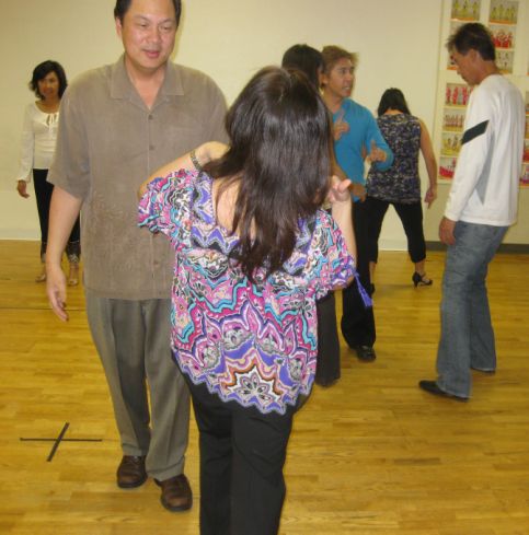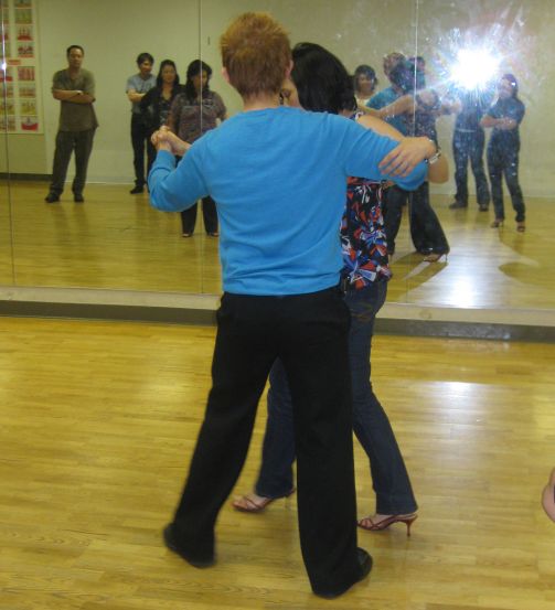 Phuong and I practicing our Ocho steps, a figure-8 traced by the follower's feet when moving forward or backward.
