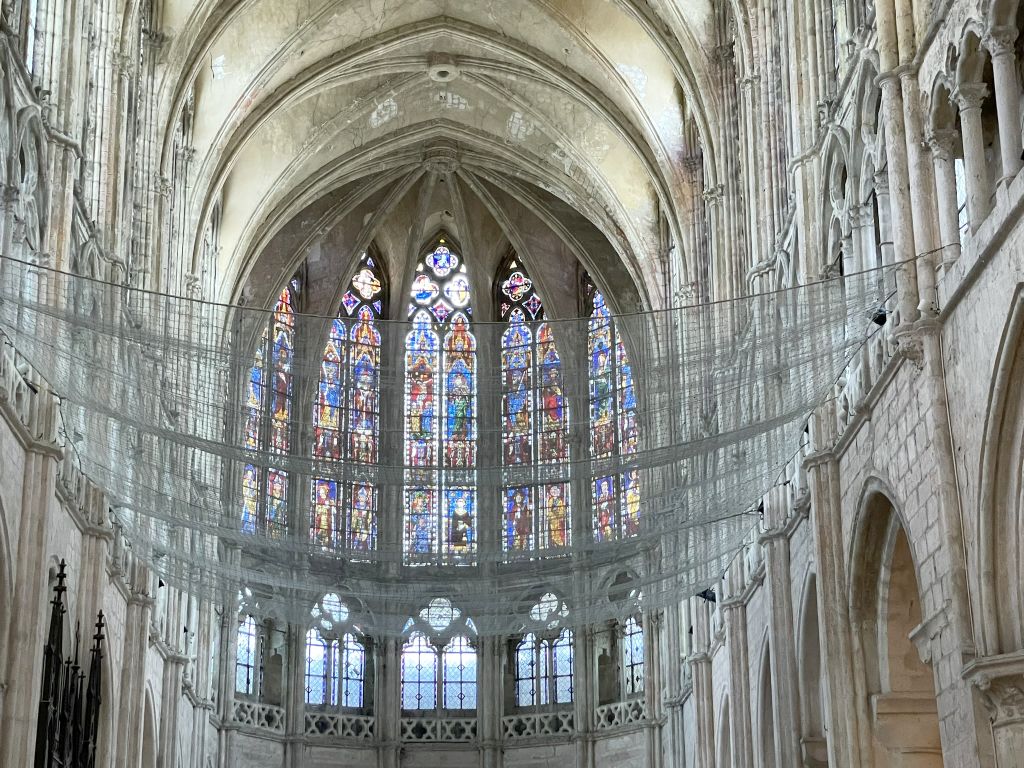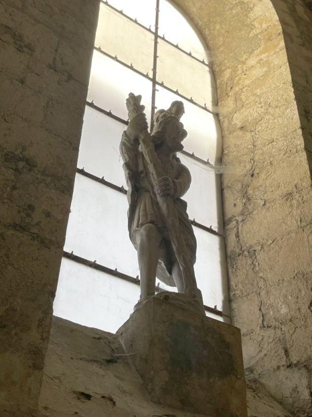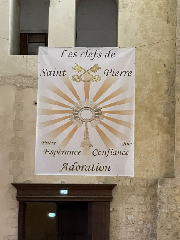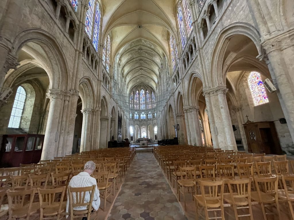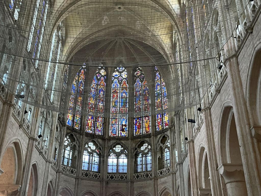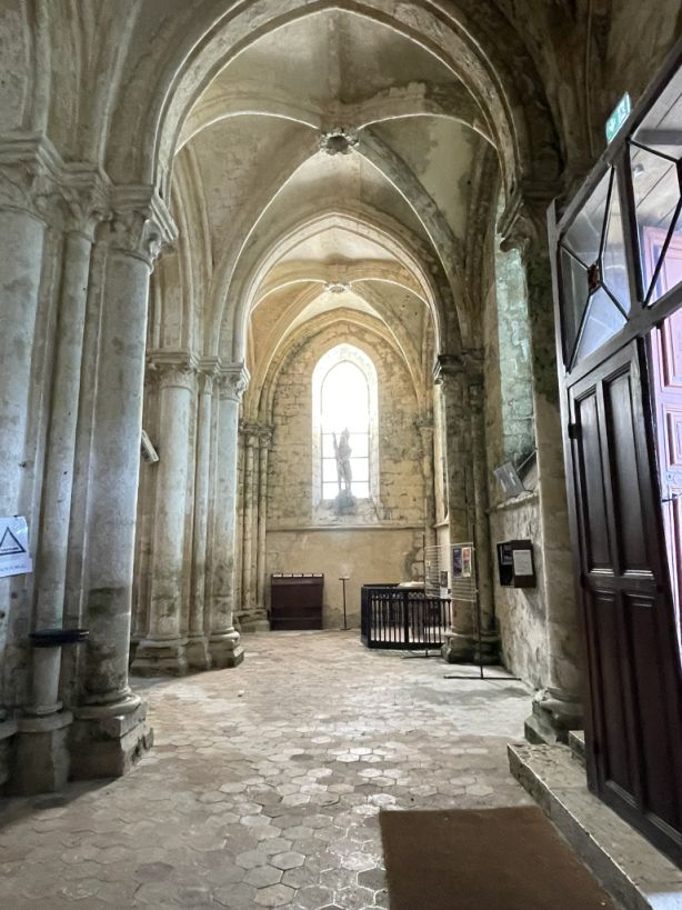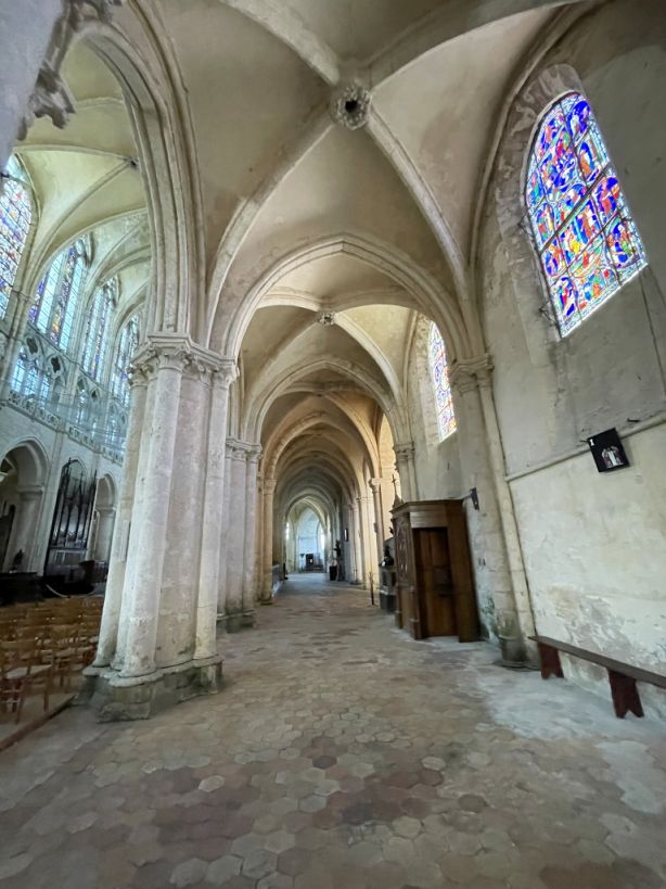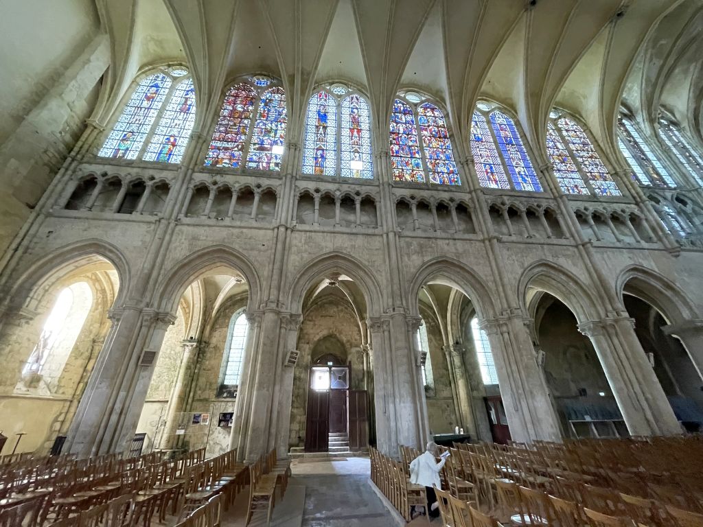 The remarkable stained glass windows with several tell the lives of the saints, including that of Saint Pierre.