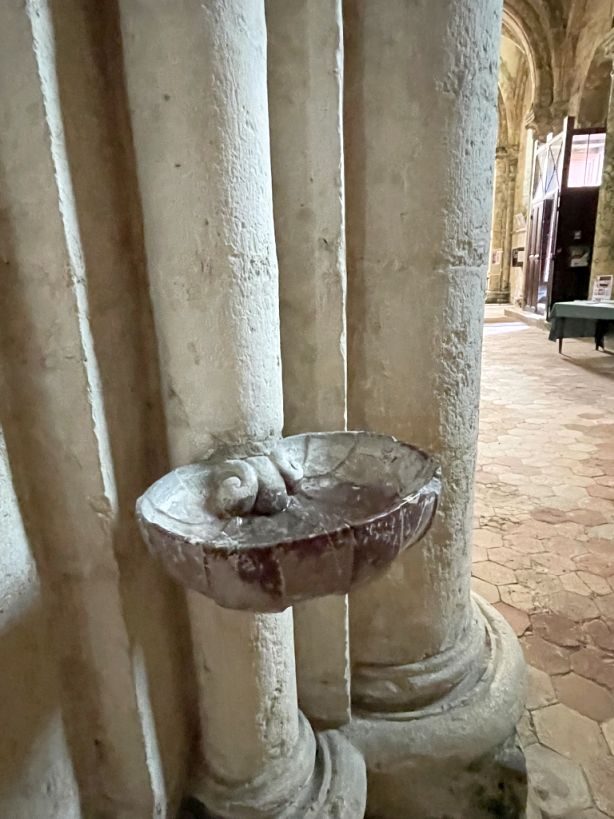 The church was located outside the city walls and thus vulnerable to attack. The fortress-like, pre-Romanesque bell tower attached to it was used as a refuge by monks, and dates from the 10th century.