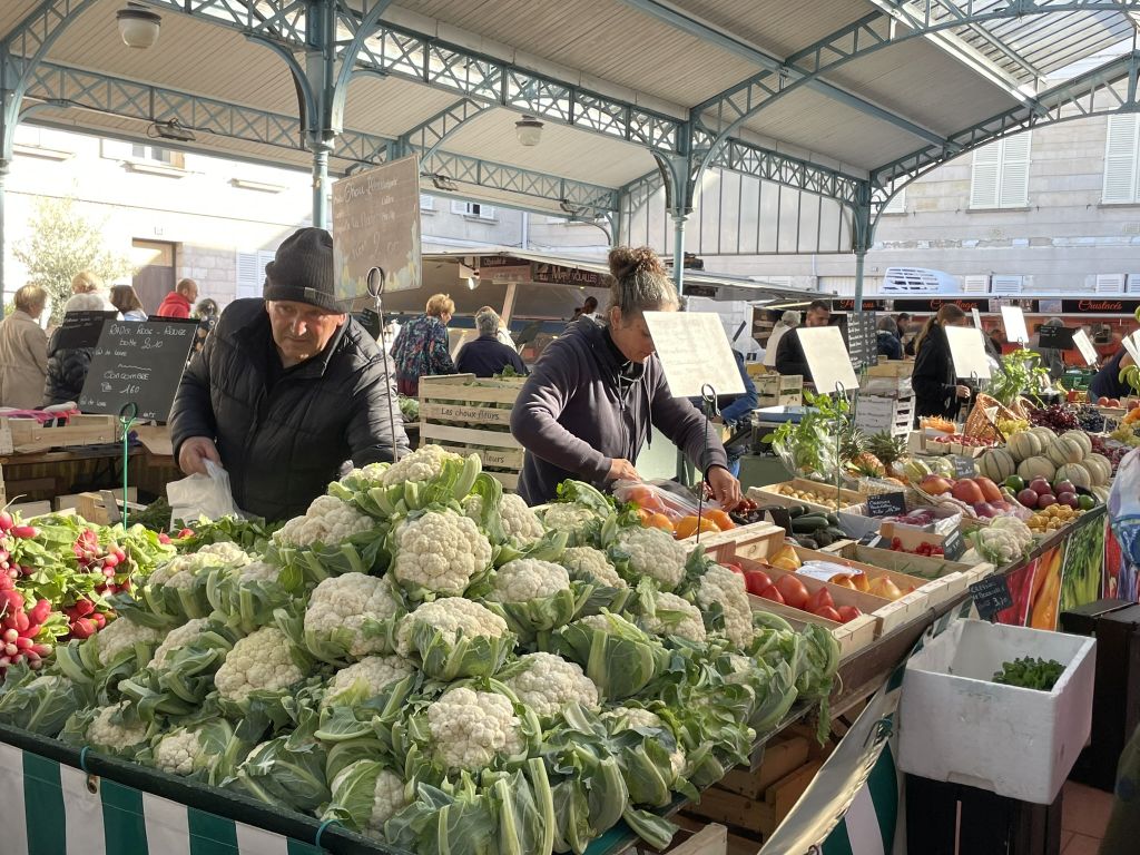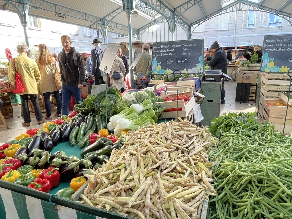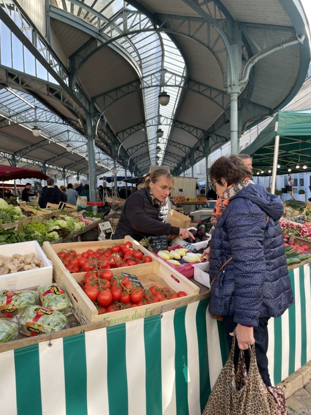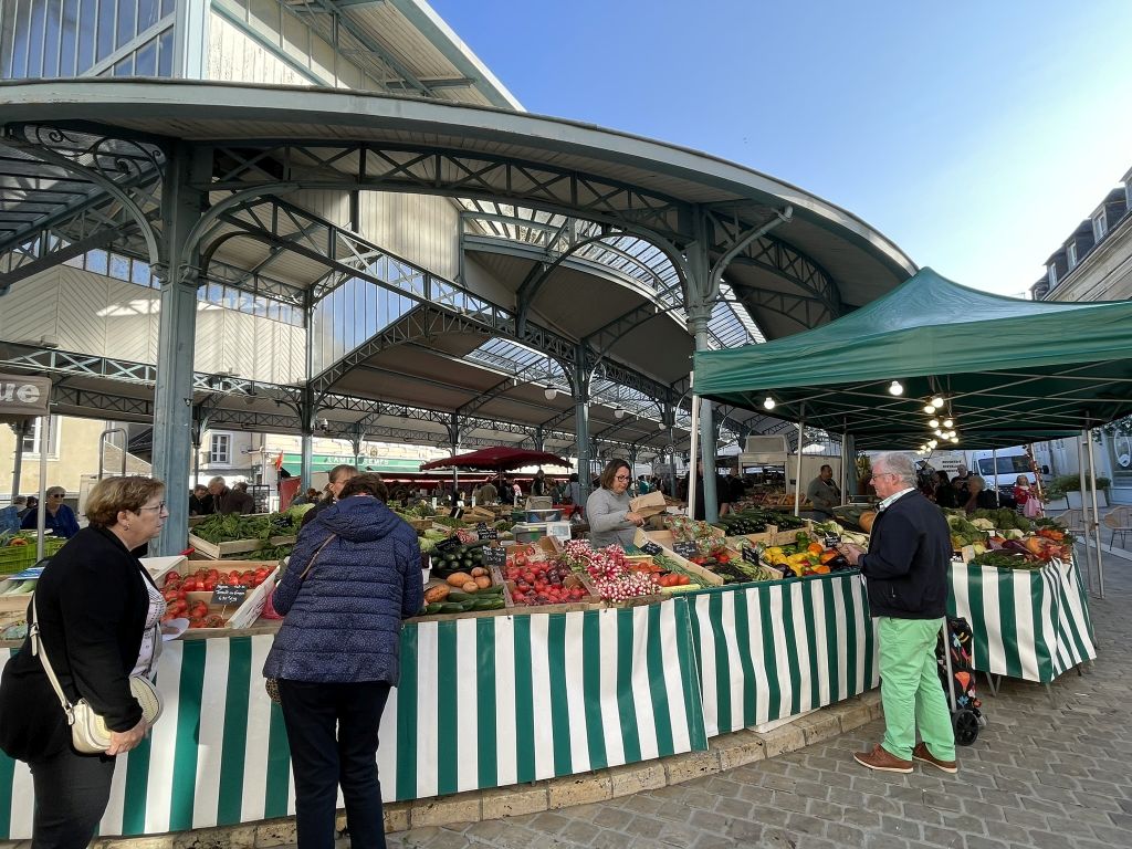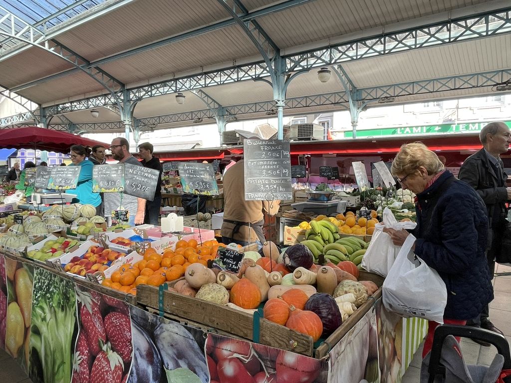 We are now at the open market on rue des Changes, right in the middle of the city center.