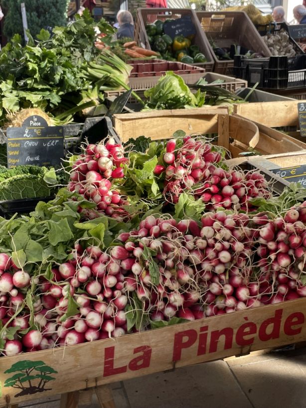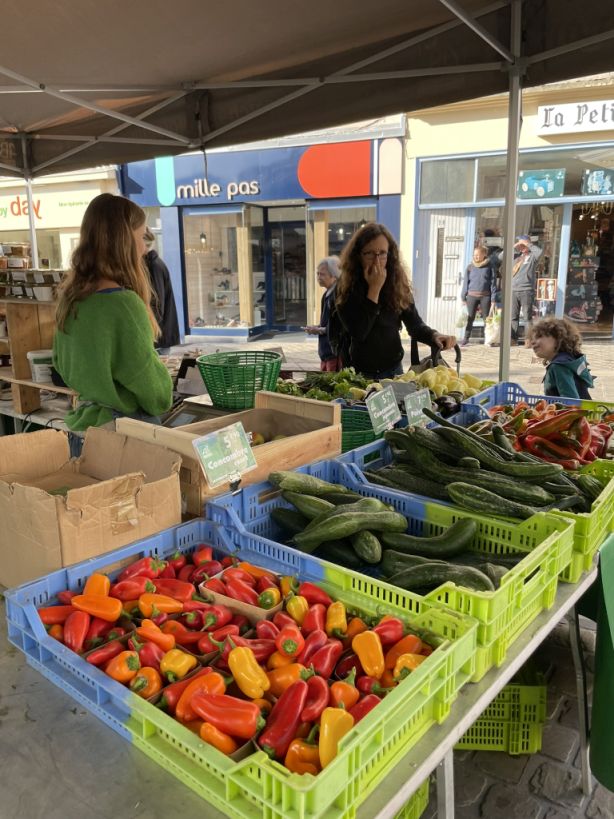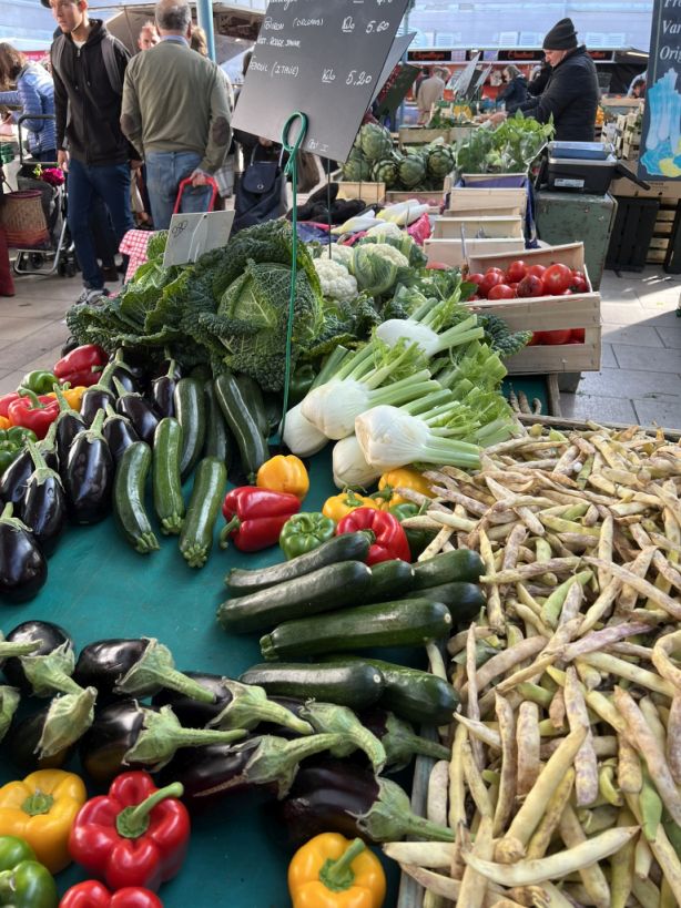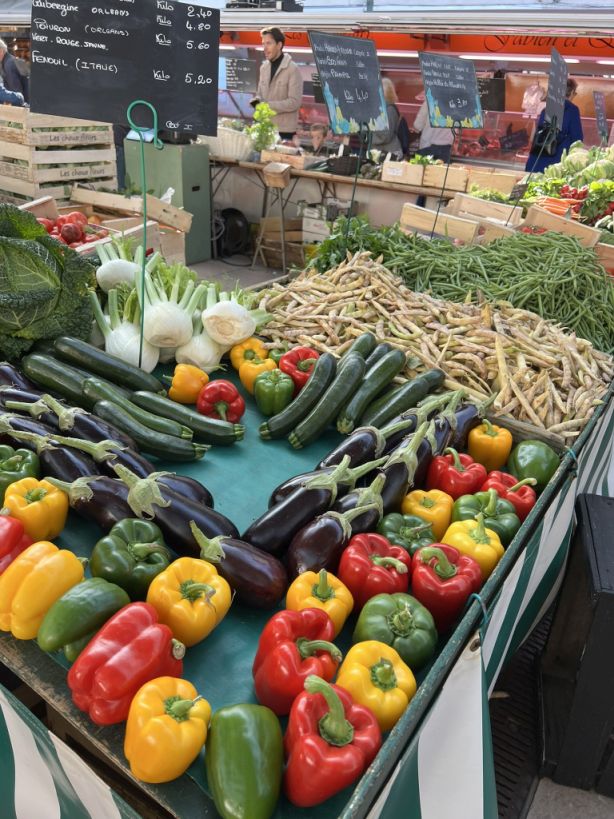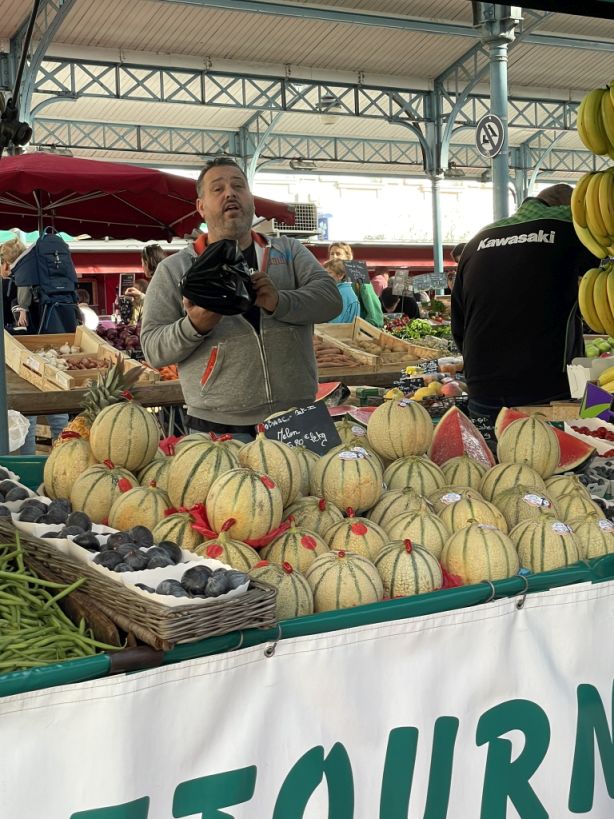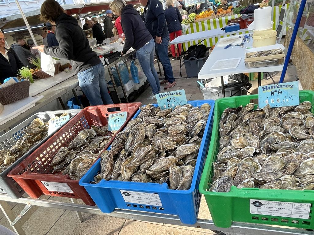 We are now at the open market on rue des Changes, right in the middle of the city center.