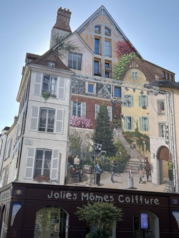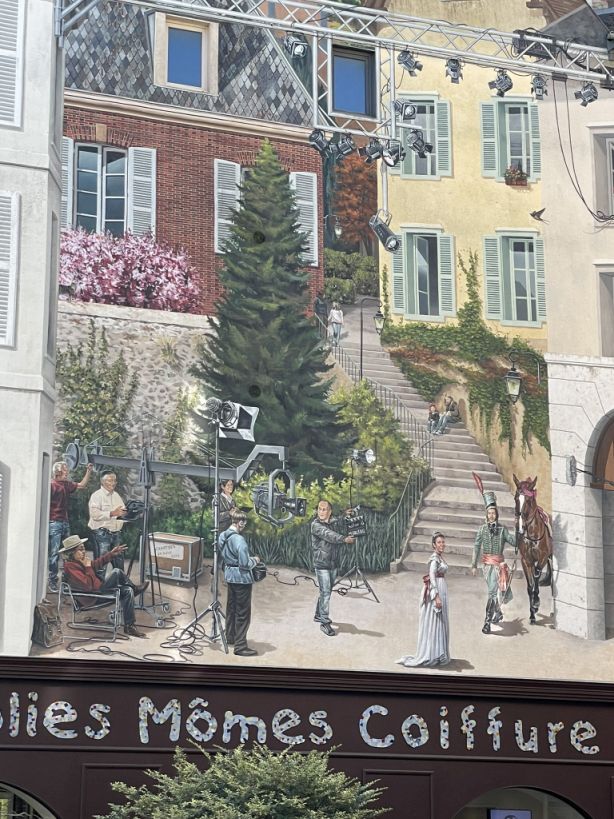 The fresco in the heart of downtown is paying tribute to General Marceau by integrating him into a movie scene.