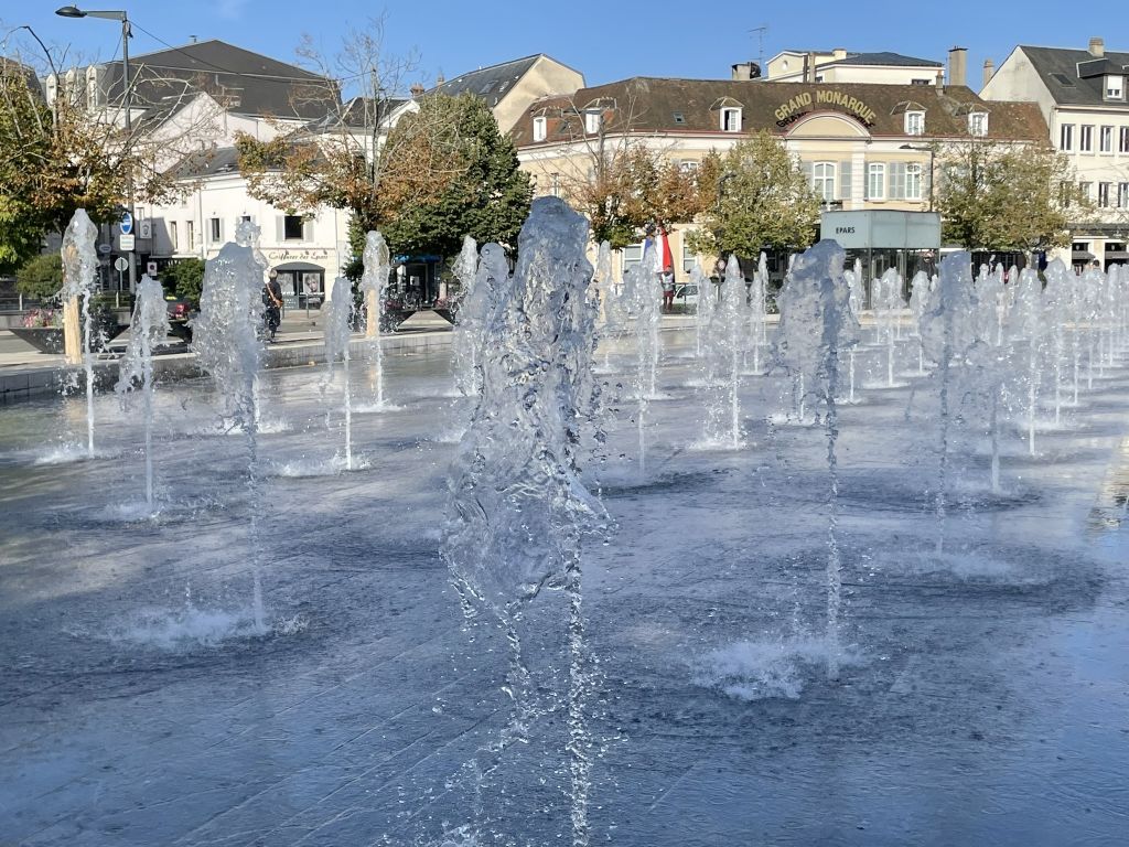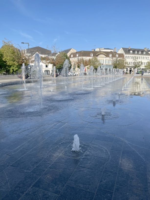 Place des Epart is located in the heart of the city. It is a large square with water works