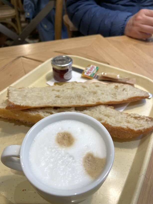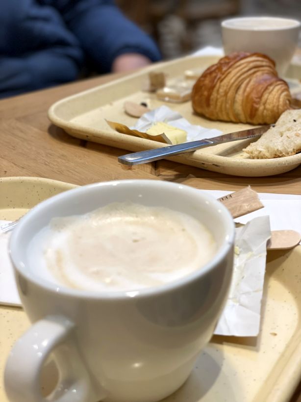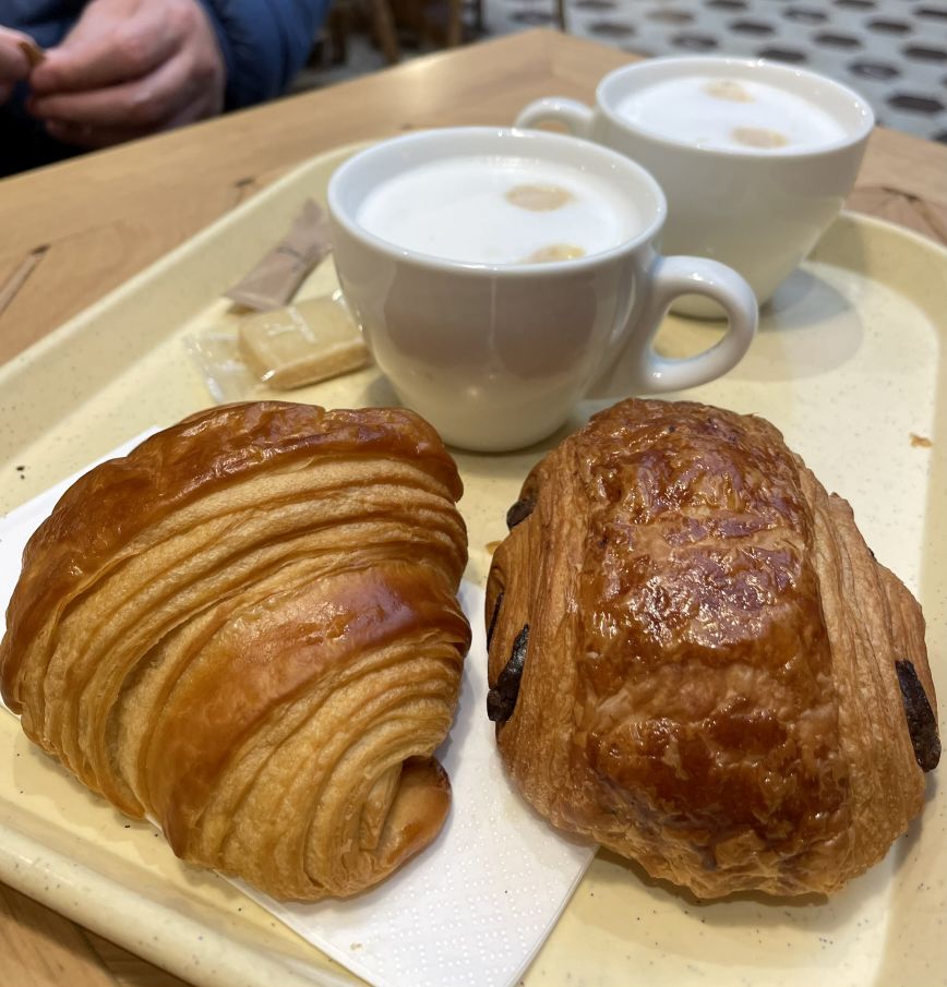 Croissant, pain au chocolat and two cappuccinos for Phu and Hoa