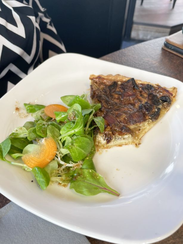 Quiche lorraine with salad on the right
