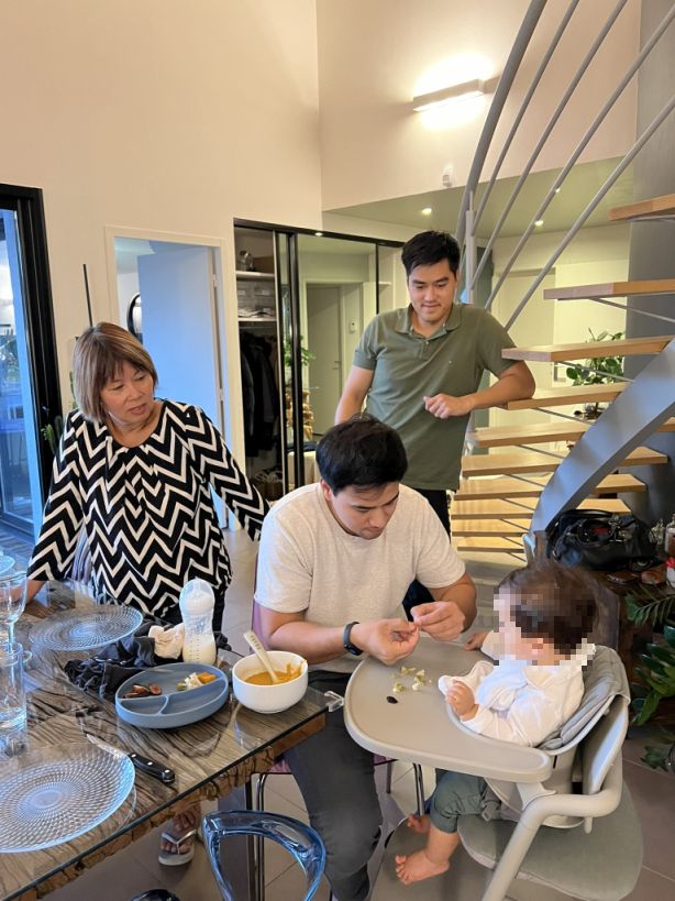Once Eliott is taken care of, we are now all sitting down for dinner.