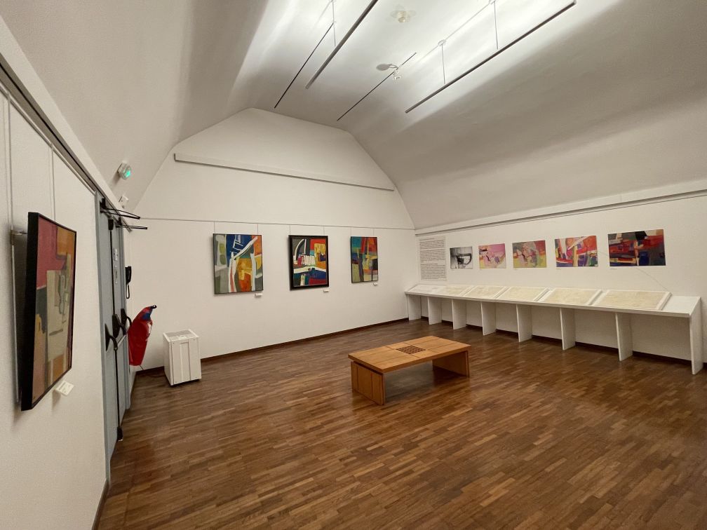 Occupying 3 floors linked by an external spiral staircase, the paintings of