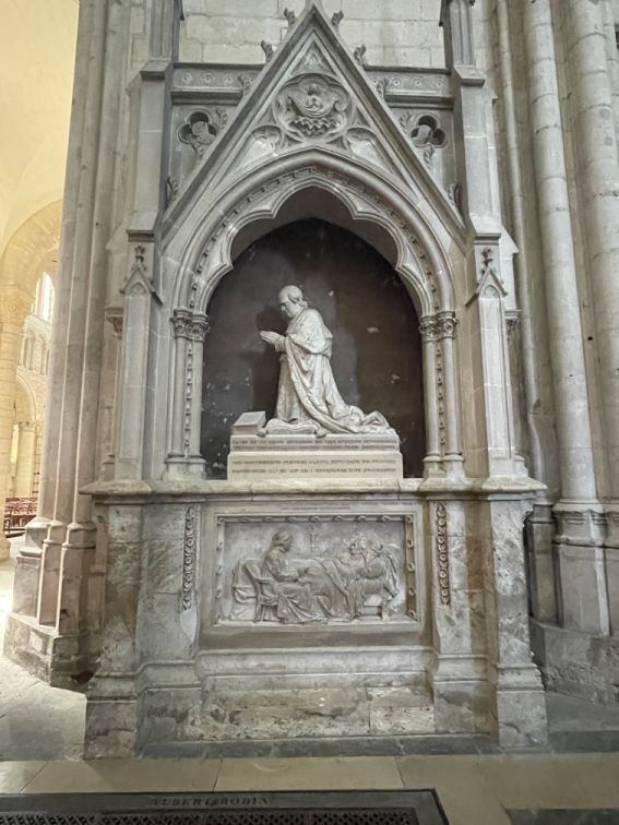 Tomb of Bishop Jean-Baptiste Bouvier, 1783-1854, with sculpture of the visit to his deathbed by Pope Pius IX.