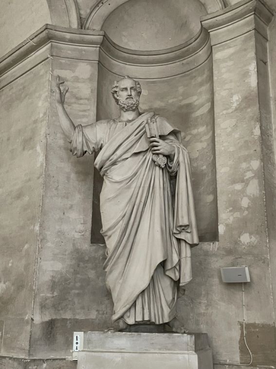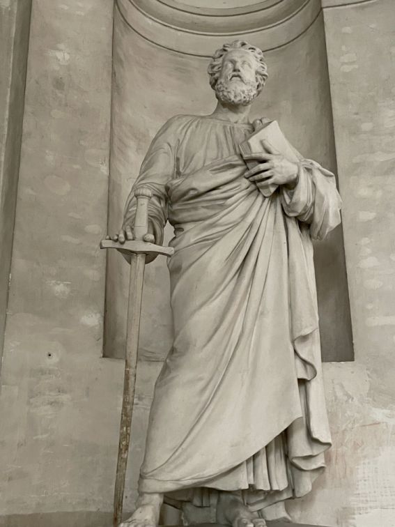 The entrance flanked by St. Peter and St. Paul sculptures.