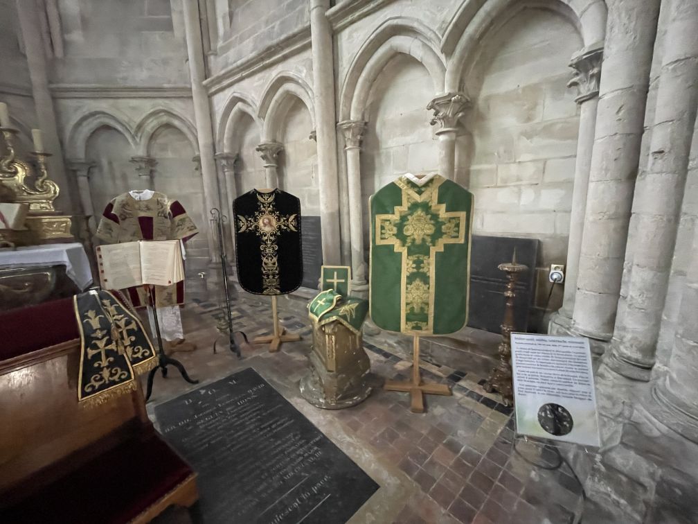 Copes for the greetings of the blessed Sacrament and a dalmatic, liturgical clothed for deacons.