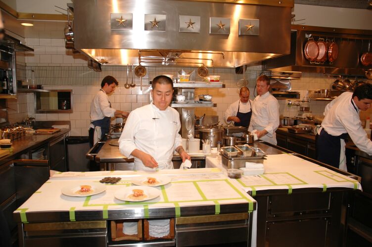 In Keller's absence, Corey Lee, Chef de cuisine runs the whole kitchen.