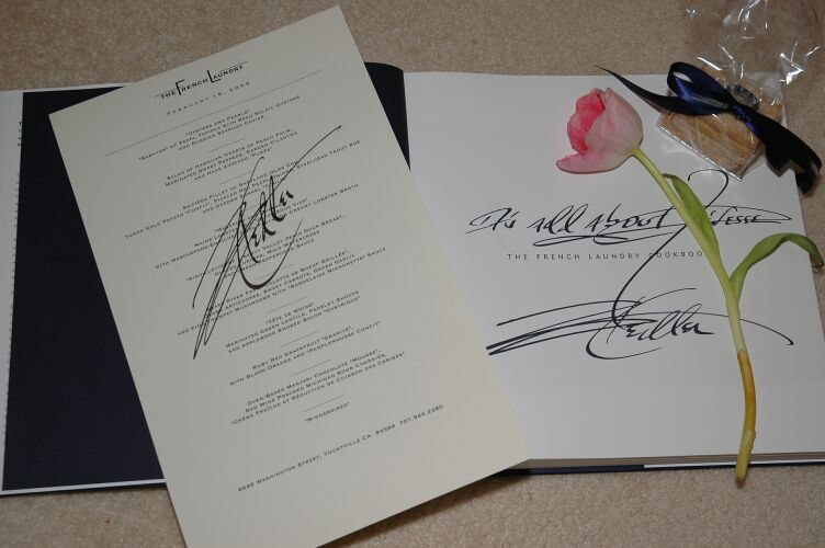 On the left is our Menu with Keller's signature. On the right it is the French Laundry cookbook with Keller's autograph.