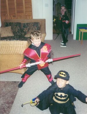 The super heroes fighting - Batman, a Ninja and Cat-Woman |