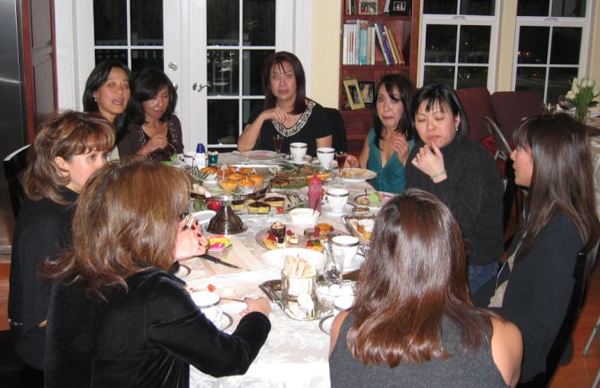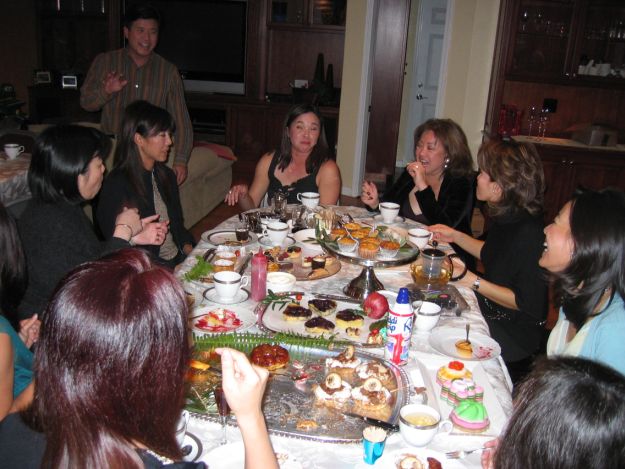 Hanh set up the desserts on a separate table and all the ladies got up and took over the Dessert table!