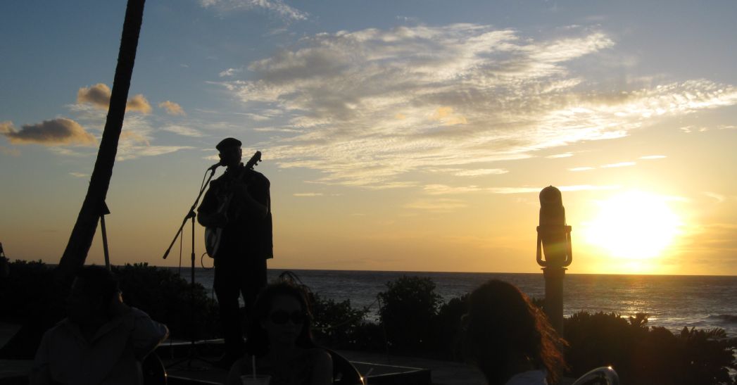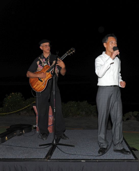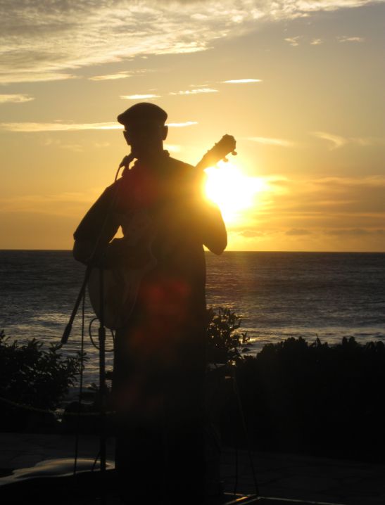 Singer with guitar to provide music in the background to entertain us during our meal.
