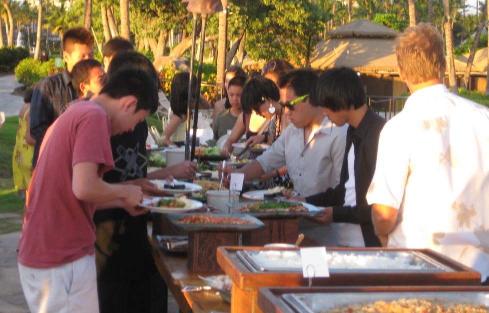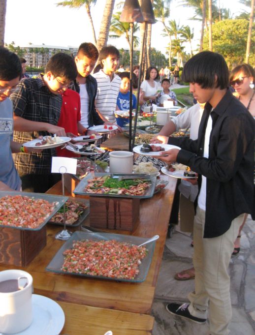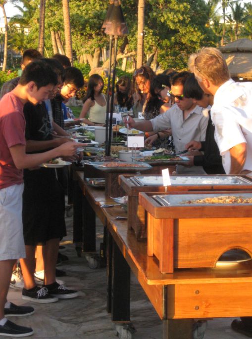 Then Sammy, the trip coordinator gave the signal for the kids to get in line and get the food. |